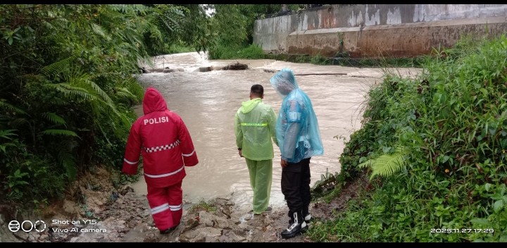 Pematangsiantar !!! Kompakonline.com -Ditengah turunnya hujan, Polsek Siantar Martoba Polres Pematangsiantar melalui Kanit Samapta IPTU Ritca Siahaan bersama Kanit Intelkam IPDA Leo Tambunan, SH dan personil piket melaksanakan monitoring aliran sungai dalam rangka mengantisipasi terjadinya bencana alam banjir di wilayah hukum Polsek Siantar Martoba, pada Kamis ( 27 / 11 / 2025 ) sore sekira pukul 16.30 Wib.