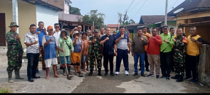 Bersama Tiga Pilar , Kapolsek Siantar Marihat Gotong Royong Bersama di Gang Banjar Nahor.