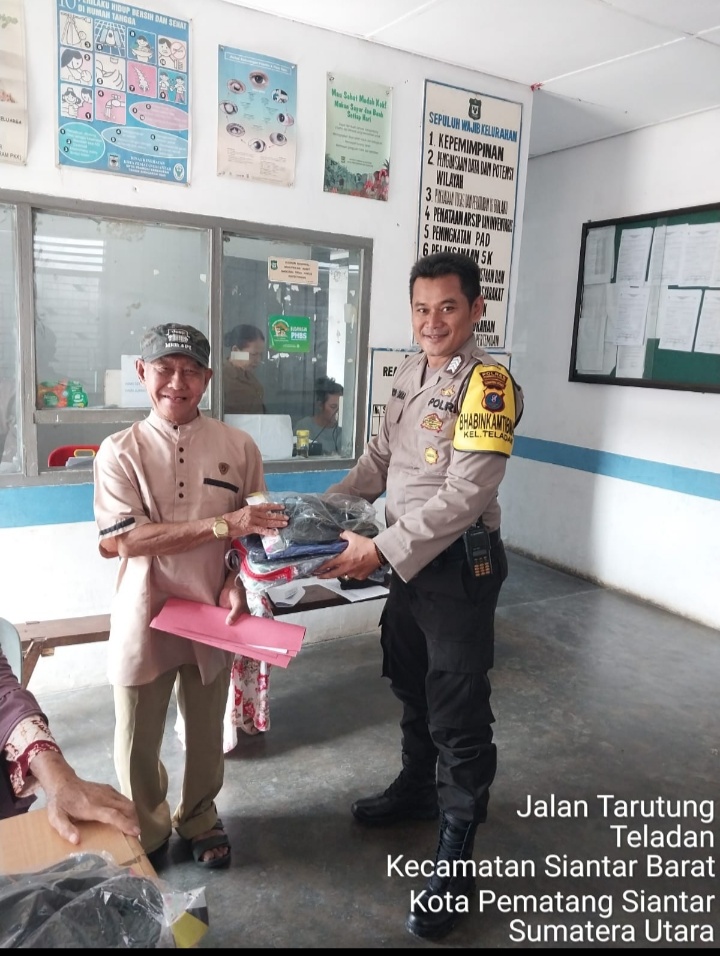 Pematangsiantar !!! Kompakonline.com – Polsek Siantar Barat, Polres Pematangsiantar melalui Bhabinkamtibmas Kelurahan Teladan Bripka Irwan Surya Darma bersama perangkat Kelurahan Teladan memberikan bantuan sosial (Bansos) kepada lanjut usia (Lansia).