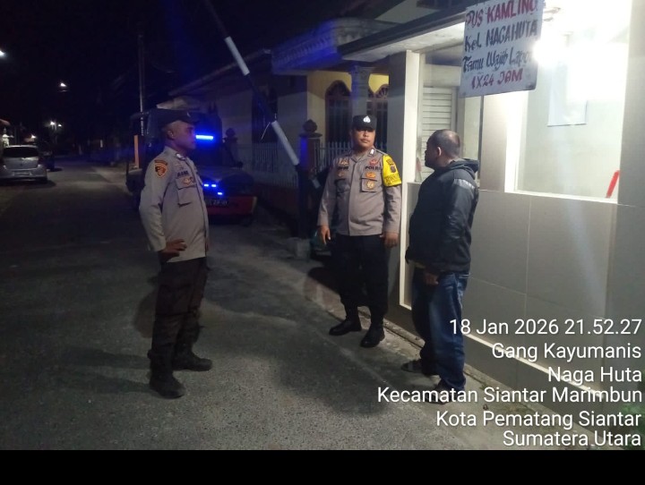 Pematangsiantar !!! Kompakonline.com -Piket Bhabinkamtibmas Polsek Siantar Marihat Polres Pematangsiantar melaksanakan kegiatan Saling ( Sapa Siskamling ) di Sat Kamling Perum Siantar Indah Jalan Sisingamangaraja Gang Kayu Manis Kelurahan Nagahuta Kecamatan Siantar Marimbun Kota Pematangsiantar, pada hari Minggu ( 18 / 01 / 2026 ) malam sekira pukul  22.00 Wib.