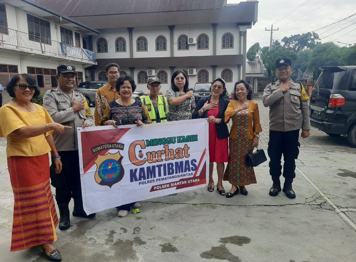 Pematangsiantar !!! Kompakonline.com -Polsek Siantar Utara Polres Pematangsiantar melalui Bhabinkamtibmas AIPTU B.Purba dan AIPTU H. Damanik menggelar kegiatan Minggu Kasih Curhat Kamtibmas di Gereja GKPS Jalan SM. Raja, Kelurahan Sigulang gulang Kecamatan Siantar Utara Kota Pematangsiantar, pada hari Minggu ( 09 / 11 / 2025 ) pagi sekira pukul 09.30 Wib.