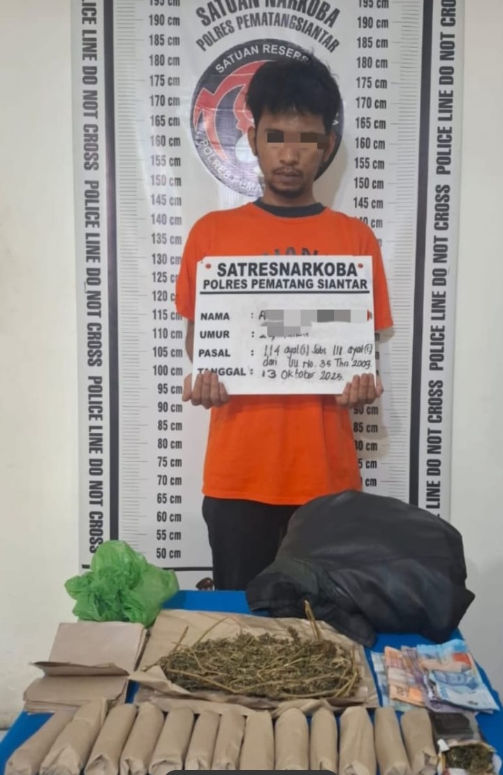 Pematangsiantar !!! Kompakonline.com -Satuan Reserse Narkoba Polres Pematangsiantar berhasil Mengungkap dan menangkap seorang pemilik barang haram dengan berat bruto 230 gram narkotika jenis ganja di Jalan Medan Gang Air Bersih Kelurahan Naga Pitu Kecamatan Siantar Martoba Kota Pematangsiantar, pada hari Senin ( 13 / 10 / 2025 ) malam sekira pukul 22.00 Wib. .