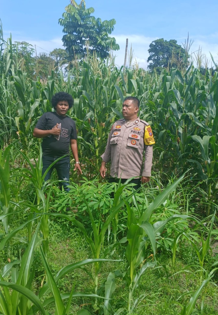 Pematangsiantar !!! Kompakonline.com -Dalam rangka mendukung Program Ketahanan Pangan (Ketapang), Polsek Siantar Martoba Polres Pematangsiantar melalui Bhabinkamtibmas Kelurahan Nagapitu AIPTU S. Ambarita sambangi lahan tanaman jagung masyarakat Arthur Juliwanson Damanik di Jalan Demorasi, Kelurahan Sumber jaya, Kecamatan Siantar Martoba Kota Pematangsiantar, pada Sabtu ( 11 / 10 / 2025 ) pagi pukul 10.30 Wib.