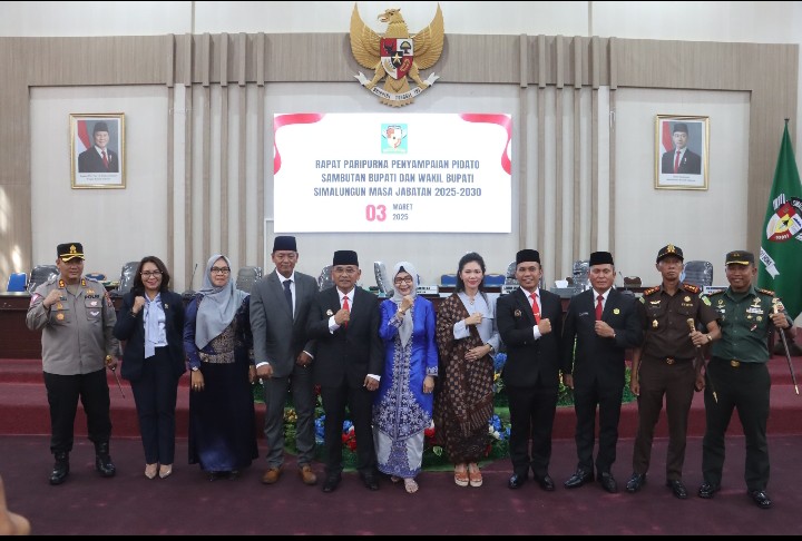 Rapat Paripurna DPRD Kabupaten Simalungun dalam rangka penyampaian pidato sambutan Bupati dan Wakil Bupati Simalungun masa jabatan 2025-2030 berakhir pada pukul 15.15 Wib. Acara ditutup dengan foto bersama seluruh pejabat yang hadir sebagai bentuk solidaritas dan dukungan terhadap kepemimpinan baru di Kabupaten Simalungun. ( JS ).