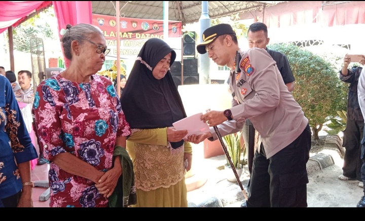 Kapolres sekaligus pemberian tali asih kepada kaum duafa dan anak yatim didampingi Muspika Bandar Khalipah dan dilanjut makan bersama.