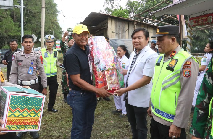 “Kami disambut oleh Ka Pos Yan II AKP Daniel Jani Damanik. Forkopimda memberikan bingkisan snack dan mineral kepada 28 personel yang bertugas. Alhamdulillah arus lalu lintas sedang dan lancar, kejadian menonjol nihil”, ungkap Ketua DPRD Sugiarto.