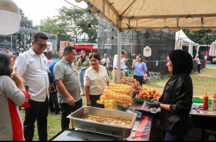 Kemudian, Ny Liswati menyempatkan diri berbelanja kuliner di stand UMKM. Saat sedang memilih makanan, warga menghampiri dan meminta foto bersama dengan Ny Liswati. ( JS ).