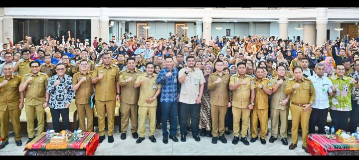 Gubernur Bobby Afif Nasution bersama OPD beserta Bupati dan Walikota secara simbolis menyerahkan akad massal KUR tahun 2025 kepada pelaku usaha. ( JS ).