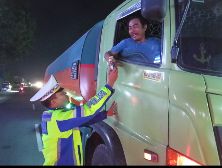 Malam – Malam Bagi Kopi Gratis! Kanit Gakkum Polres Simalungun Peduli Supir : “Jangan Ngantuk, Nyawa Berharga”