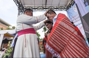 Usai menyampaikan sambutan, Wesly didampingi Ny Liswati diulosi oleh Uskup Agung Medan Mgr Kornelius Sipayung OFM Cap. Begitu juga Sah Udur dan Unsur Forkopimda yang hadir.