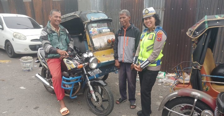 Kasat Lantas IPTU Friska Susana, SH dalam laporannya mengatakan kegiatan tersebut rangkaian Program Polisi Lalulintas (Polantas) Menyapa. Edukasi diberikan kepada masyarakat pedagang menggunakan bagu jalan.
