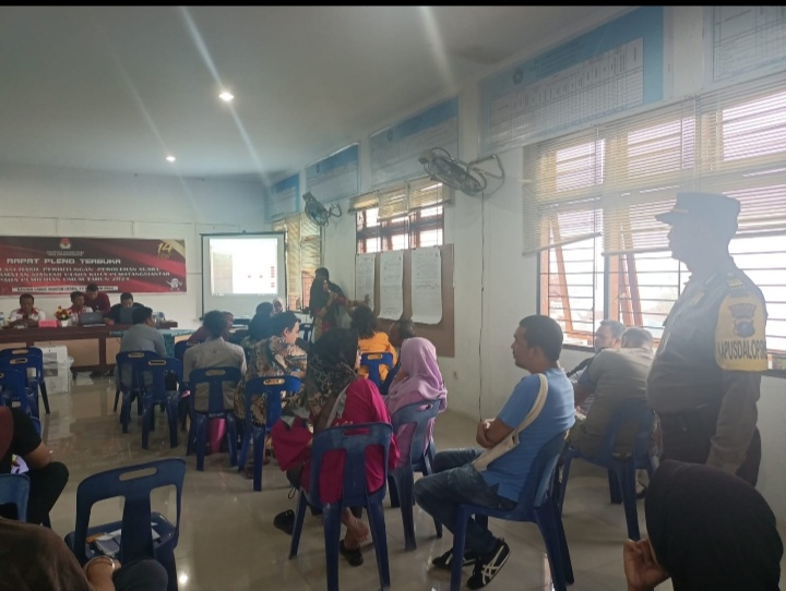 Pematangsiantar – Dalam Rapat rekapitulasi hasil penghitungan perolehan suara Pemilu 2024 Di 8 Kecamatan Polres Pematangsiantar berikan pengamanan untuk Antisipasi timbulnya masalah terhadap perhitungan suara di PPK, Sabtu ( 17 / 02 / 2024 ).
