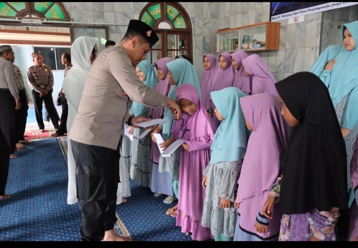 Ustadz Ahmad Fauzi Lubis, Spd.i memberikan tausiyah yang penuh hikmah kepada peserta yang hadir, dengan mengusung Thema “Hikmah Isra’ Miraj menanamkan moral dalam mewujudkan Polri Presisi siap mengawal Pemilu Damai”.