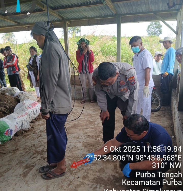 Polres Simalungun Evakuasi Korban Gantung Diri di Perladangan Purba Tongah.