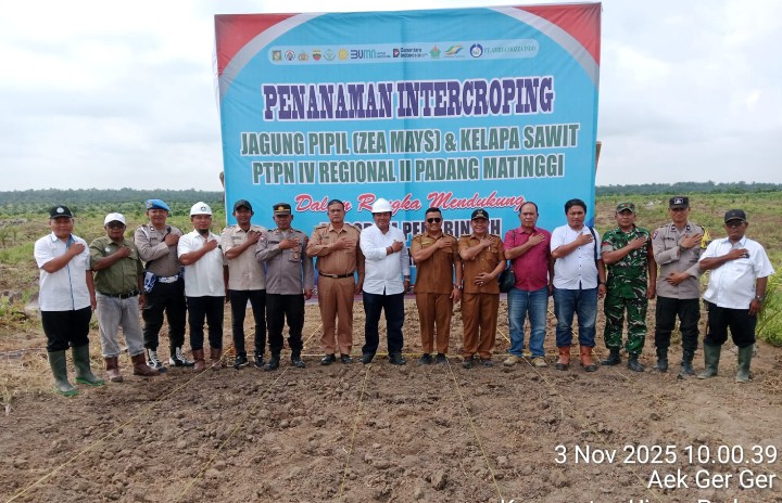 Simalungu !!!!! Kompakonline.com – Personil Polsek Bosar Maligas menghadiri dan memonitor kegiatan tanam perdana jagung di lahan PTPN IV Kebun Padang Matinggi sebagai bentuk dukungan terhadap program pemerintah dalam mewujudkan ketahanan pangan nasional, Senin ( 03 / 11 / 2025 ).