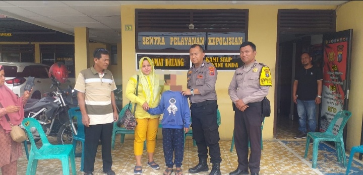 Pematangsiantar !!!! Kompakonline.com -Polsek Siantar Selatan, Polres Pematangsiantar melalui Bhabinkamtibmas Kelurahan Kristen BRIPKA Swandi menyerahkan seorang anak berinisial Ba (8) warga Kota Sibolga, Kabupaten Tapanuli Tengah kepada orangtuanya, Sabtu ( 10 / 02 / 2024 ) sore sekira pukul 15.20 Wib.