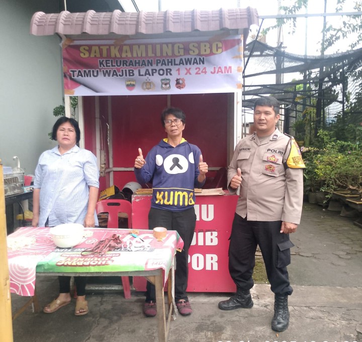 Pematangsiantar !!! Kompakonline.com -Polsek Siantar Timur Polres Pematangsiantar melalui Bhabinkamtibmas Kelurahan Pahlawan Aiptu Ungkap Hutagalung sambangi Pos Satuan Keamanan lingkungan (Satkamling) di Kompleks SBC Jalan Kapten Piere Tandean Kelurahan Pahlawan Kecamatan Siantar Timur Kota Pematangsiantar, pada Rabu ( 22 / 10 / 2025 ) pagi pukul 10.00 Wib.