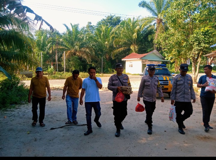 Kapolsek Tanah Jawa Kompol Asmon Bufitra, SH, MH, yang diwakilkan oleh Panit Binmas Aiptu Marlon Sihombing bersama Bhabinkamtibmas Aiptu AL Siahaan dan Bhabinkamtibmas Aiptu RH Sianturi memberikan bantuan sembako kepada dua warga yang membutuhkan.