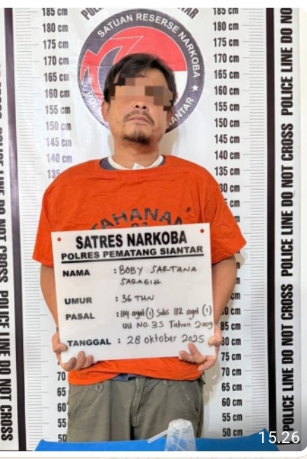 Pematangsiantar !!! Kompakonline.com -Satuan Reserse Narkoba Polres Pematangsiantar berhasil menangkap seorang laki – laki Asal Kabupaten Simalungun memiliki narkotika jenis sabu berat bruto 4,47 Gram di dalam sebuah kamar Hotel Alexander Graha, Jalan Jalan Saribu Dolok Kelurahan Tong Marimbun Kecamatan Siantar Marimbun Kota Pematangsiantar, pada hari Selasa ( 28 / 10 / 2025 ) siang sekira pukul 13.40 Wib.