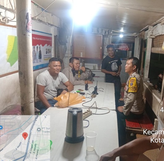 Pematangsiantar !!! Kompakonline.com -Polsek Siantar Timur Polres Pematangsiantar melalui personil Piket Bhabinkamtibmas AIPDA Okto Sihole dan AIPDA G. Sinaga menggelar Saling (Sapa Siskamling) di Pos Kamling Jalan Senangin Kelurahan Pardomuan Kecamatan Siantar Timur Kota Pematangsiantar, pada Sabtu ( 04 / 10 / 2025 ) malam sekira pukul 20.40 Wib.