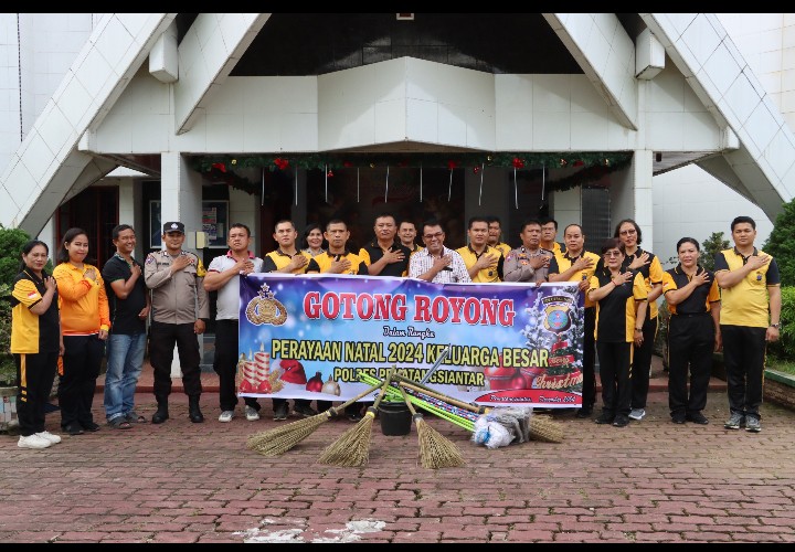 Pematangsiantar !!! Kompakonline.com -Polres Pematang Siantar melalui Panitia Natal laksanakan bhakti sosial (Baksos) kebersihan gotongroyong dan pembagian peralatan kebersihan di gereja GKPI Jalan Simbolon, Jumat ( 13 / 12 / 2024 ) pagi pukul 08.00 Wib.