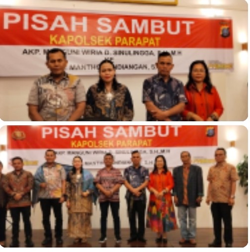 Simalungun !!!!! Kompakonline.com – Ballroom Atsari Hotel menjadi saksi bisu sebuah acara yang sarat makna dan kehangatan, yaitu pisah sambut Kapolsek Parapat dari AKP Manguni Wiria D. Sinulingga, SH, M.H kepada AKP Mantho Pandiangan, SH, Selasa ( 20 / 01 / 2026 ), menjadi hari yang istimewa bagi seluruh jajaran Polsek Parapat dan masyarakat sekitar, karena pada hari itu, tongkat kepemimpinan resmi berpindah tangan, menandai babak baru dalam upaya menjaga keamanan dan ketertiban di kawasan wisata yang terkenal akan keindahan Danau Toba ini.