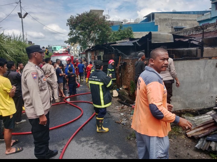 Tidak Ada Korban Jiwa, Polres Pematangsiantar Cek TKP Kebakaran 3 Bangunan Semi Permanen.