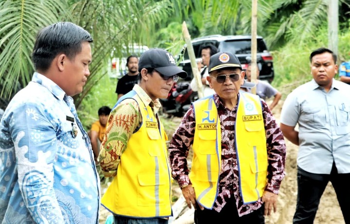 Tinjau Jalan Provinsi Putus Akibat Longsor, Bupati Simalungun Perintahkan Kadis PUTR Lakukan Perbaikan Sementara.