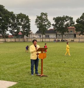 Walikota Pematangsiantar Wesly Silalahi, SH, MKn Yang Diwakili Sekda Junaedi Sitanggang, STTP, M.Si Menendang Bola Tanda di Mulai nya Kegaitan Pertandingan Sepakbola Yang di Selenggarakan Pemuda Katolik Komisariat Pematangsiantar.