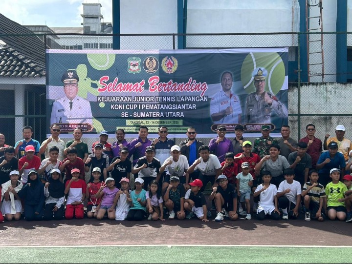 Pematangsiantar!!! Kompakonline.com -Wakapolres Pematangsiantar KOMPOL Budiono Saputro, SH. MH mewakili Kapolres Pematangsiantar menghadiri Pembukaan Kejuaraan Junior Tenis Lapangan Antar Pelajar se Sumatera Utara (Sumut) yang berlangsung di Lapangan Tenis 022/Pantai Timur (PT), Jum’at ( 12 / 12 / 2025 ) pagi pukul 08.30 Wib.