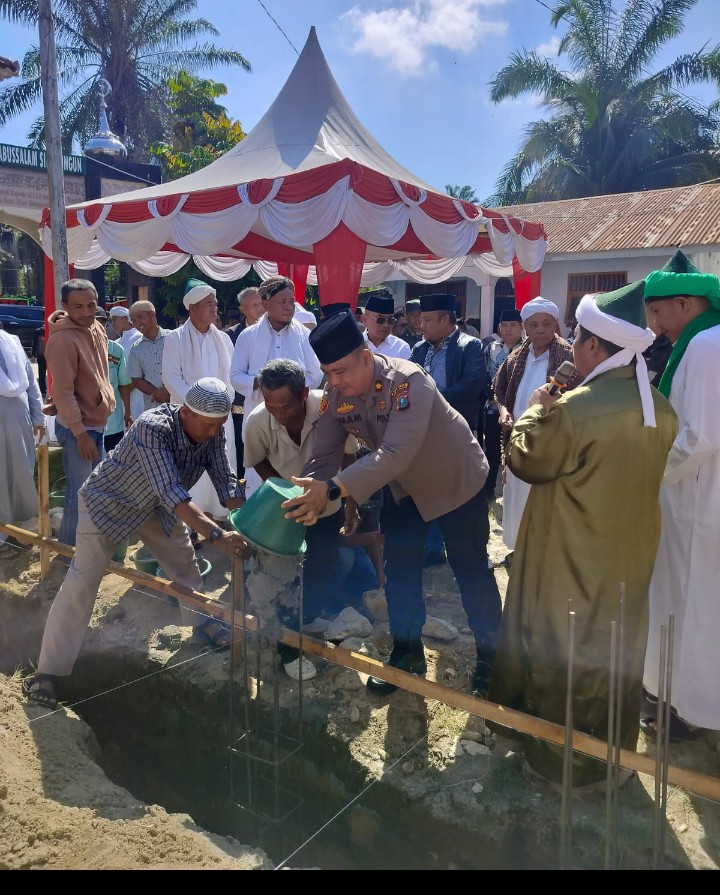 Simalungun !!!! Kompakonline.com – Pondok Pesantren Tuan Guru Batak Serambi Babussalam di Nagori Jawa Tonga, Kecamatan Hatonduhon, Kabupaten Simalungun menjadi saksi momen bersejarah peletakan batu pertama pembangunan Rumah Tahfiz Quran Haji Sugiat Santoso, Minggu ( 01 / 02 / 2026 ). Acara yang dihadiri ratusan undangan ini turut disaksikan langsung oleh Wakapolres Simalungun Kompol Imam Alriyuddin, SH, MH, mewakili Kapolres Simalungun.