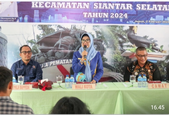 Demikian disampaikan Wali Kota Pematangsiantar dr Susanti Dewayani SpA sebelum membuka Musyawarah Rencana Pembangunan (Musrenbang) Rancangan Kerja Pemerintah Daerah (RKPD) Kecamatan Siantar Selatan Tahun 2025. Musrenbang Kecamatan Siantar Selatan dilaksanakan di Aula Kantor Camat Siantar Selatan, Jalan Pahae Ujung Kota Pematangsiantar, Jumat ( 02 / 02 / 2024 ) pagi.