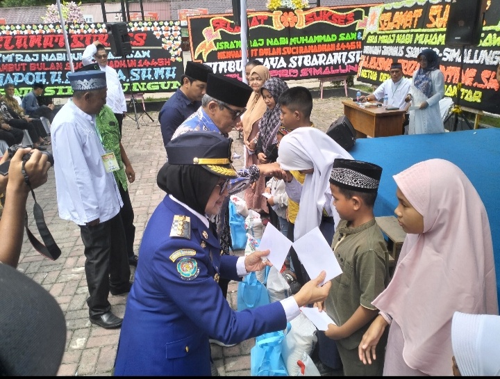 Pematangsiantar !!! Kompakonline.com Wali Kota Pematangsiantar dr Susanti Dewayani SpA bersama Ketua Dekranasda H Kusma Erizal Ginting SH menghadiri peringatan Isra’ Mi’raj Nabi Muhammad SAW dan Menyambut Bulan Suci Ramadhan 1445 yang diselenggarakan Ukhuwah Jurnalis Siantar-Simalungun. Kegiatan yang digelar di Lapangan Parkir Pariwisata, Jalan Merdeka Pematangsianțar, Kamis ( 07 / 03 / 2024 ). Acara tersebut juga diisi dengan penyantunan anak yatim oleh panitia dan keluarga Erizal Ginting.