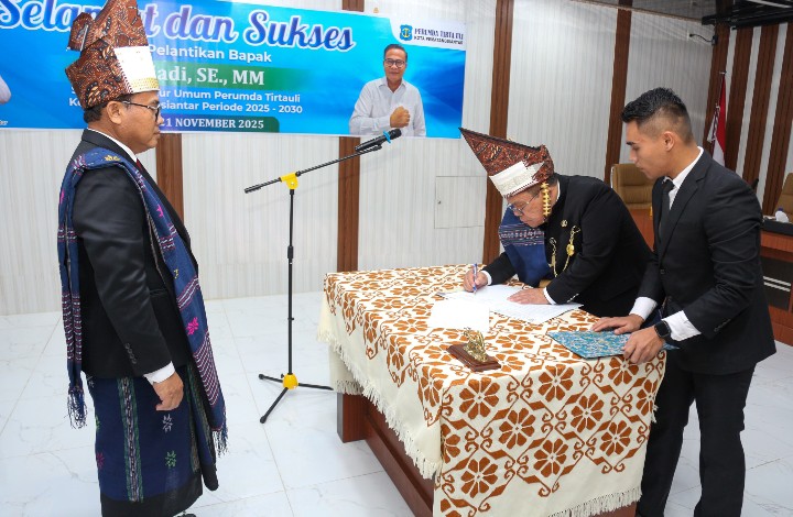 Pematangsiantar !!! Kompakonline.com – Wali Kota Pematangsiantar Wesly Silalahi, SH, MKn memimpin Pengambilan Sumpah/Janji Jabatan dan Penyerahan Surat Keputusan (SK) Wali Kota kepada Muliadi SE MM sebagai Direktur Umum Perumda Air Minum Tirta Uli Masa Jabatan 2025 – 2030. Pengambilan sumpah/janji dan penyerahan SK wali kota berlangsung di Ruang Rapat Kantor Perumda Air Minum Tirta Uli, Jalan Porsea Kelurahan Teladan Kecamatan Siantar Barat, Jumat ( 21 / 11 / 2025 ) pagi.