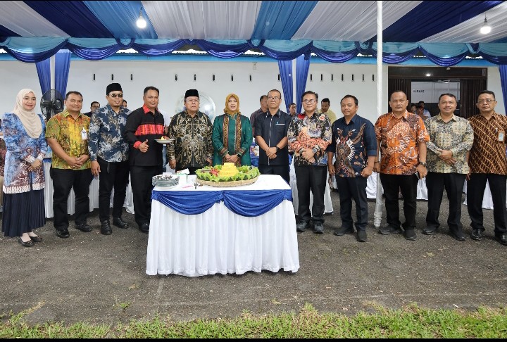 Acara diisi dengan pemotongan nasi tumpeng dan penyerahan cenderamata kepada pegawai yang purnabakti. ( JS ).
